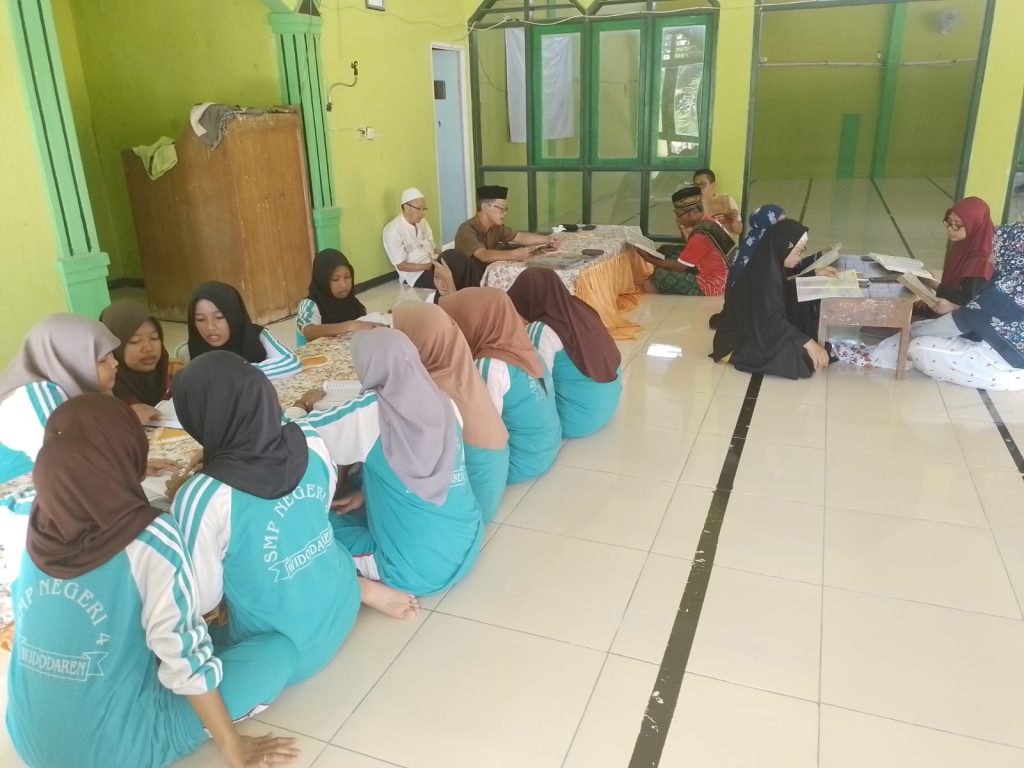 Para guru dan karyawan beserta peserta didik melakukan kegiatan membaca Al Quran di mushola SMPN 4 Widodaren. Kegiatan tersebut dilakukan dengan sangat khidmat.